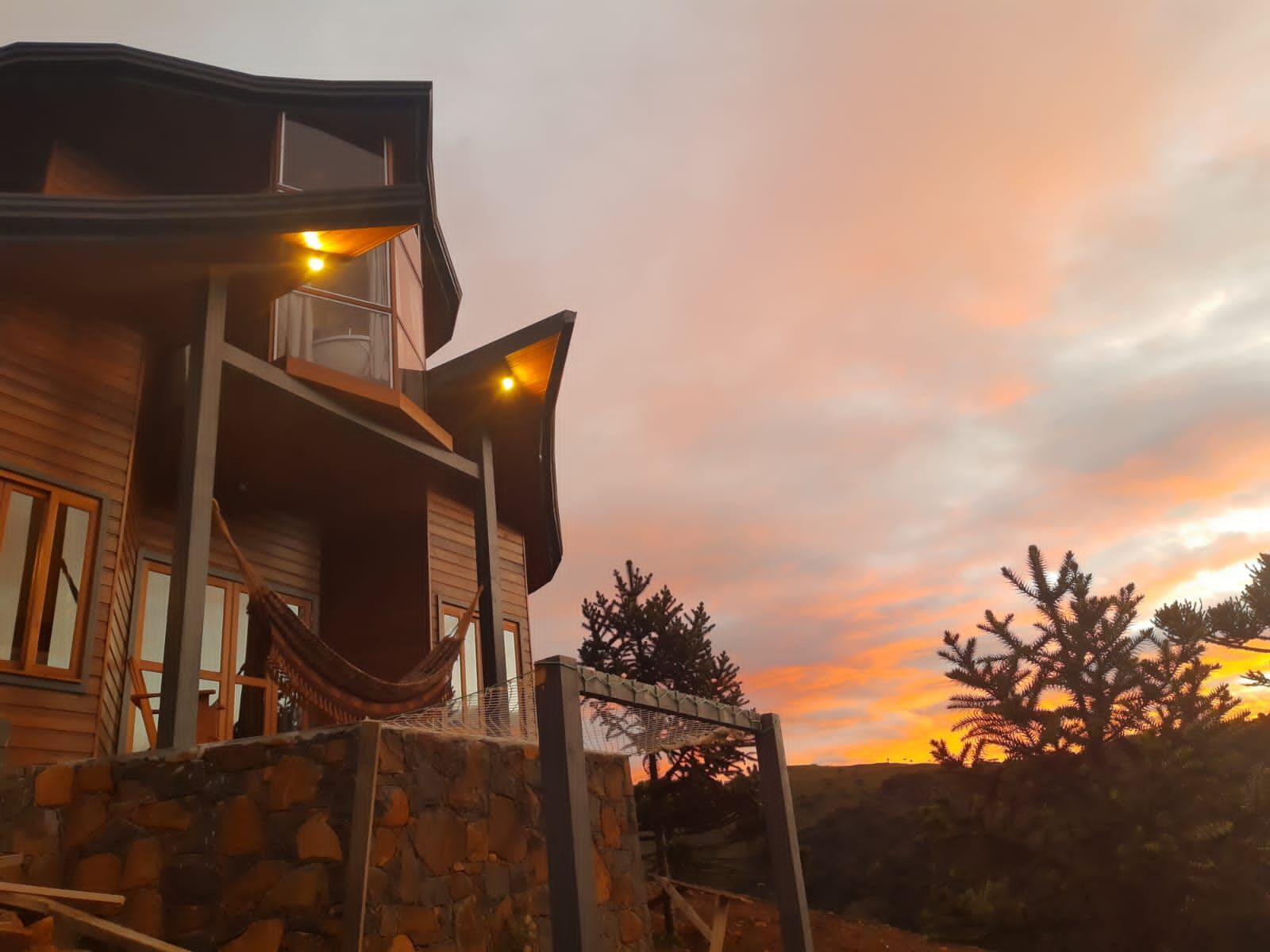 A casa é toda projetada com madeira nobre, apropriada para o frio da serra, possui mobília, água, luz e internet.